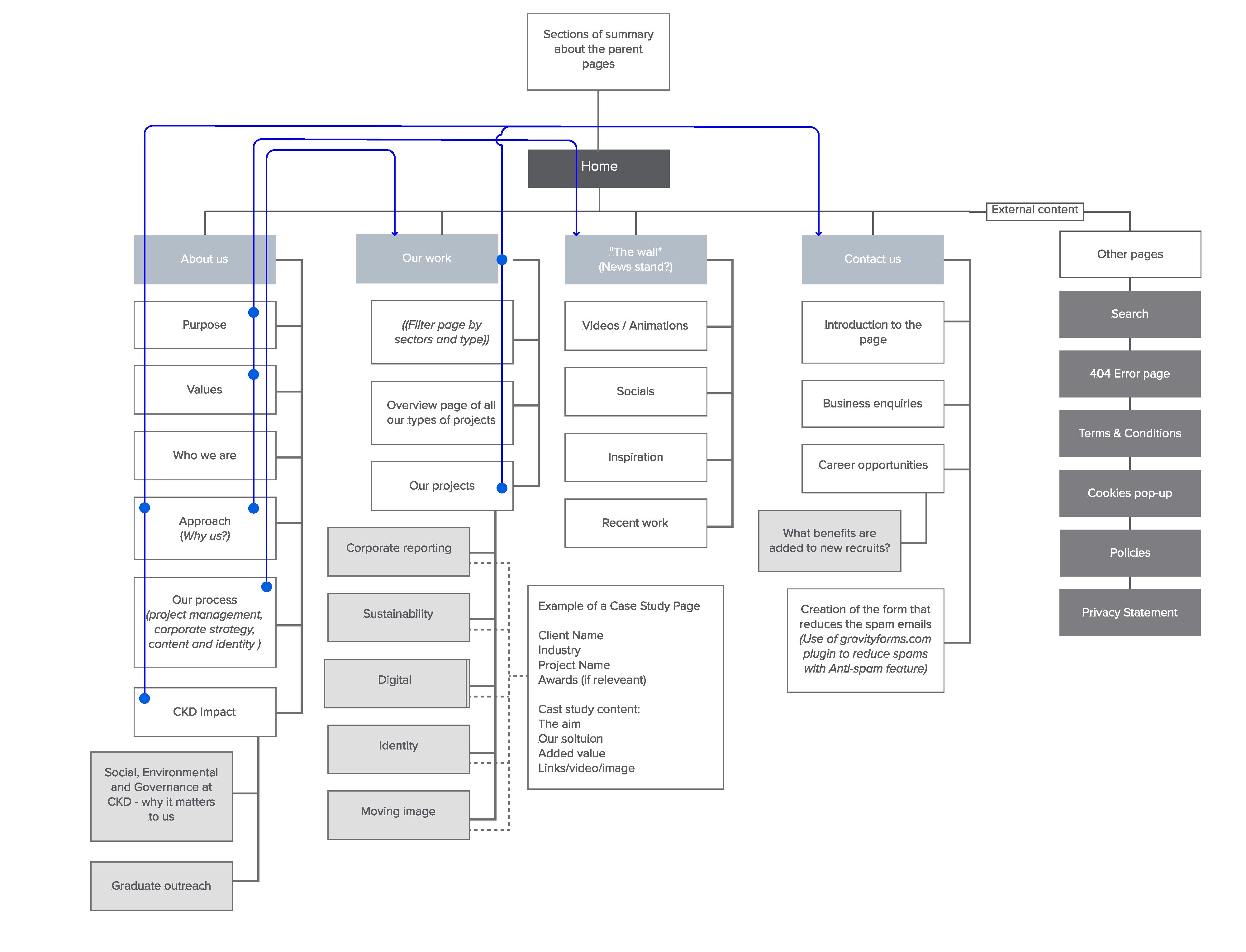 Thanks to these sessions, I was able to narrow down the website's information structure, enabling me to develop the following information architecture. This allowed me to move forward with the next phase of the project.