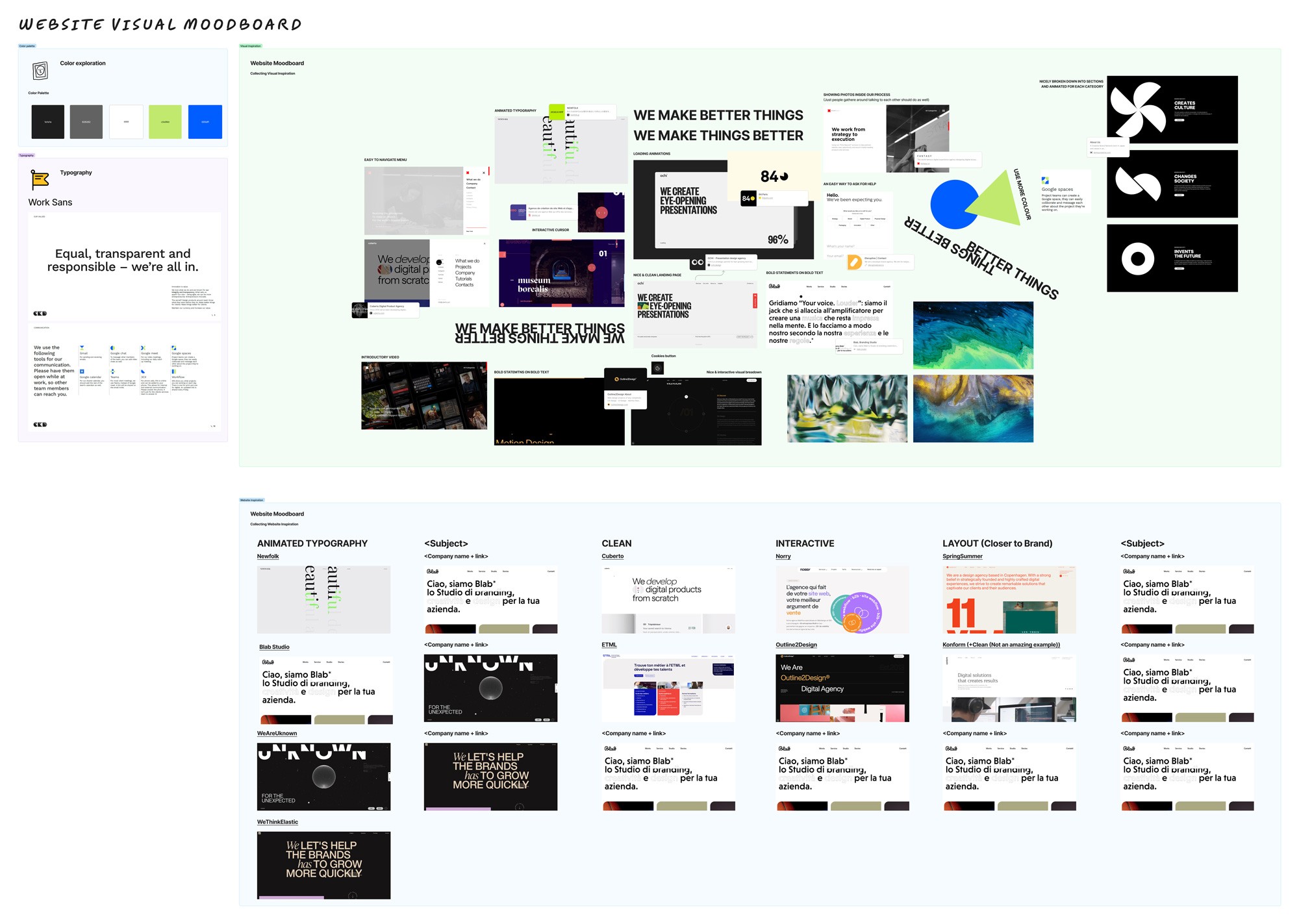 With the information architecture in place, I proceeded to visual research for the website. This included examining our direct and indirect competitors, as well as websites from other agencies or brands that aligned with our brand vision.