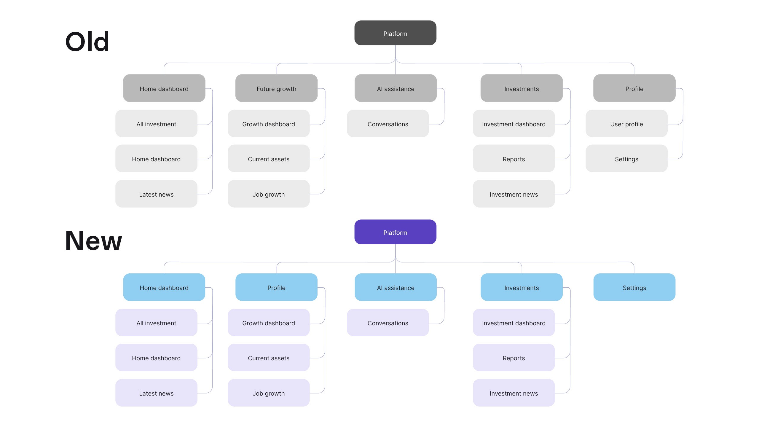 Through my user testing, I gathered valuable feedback that helped me refine my designs. Based on this feedback, I adjusted the sitemap to clarify to the users that the profile section displays users' current progress and future outcomes, while the settings section is dedicated to editing personal details.