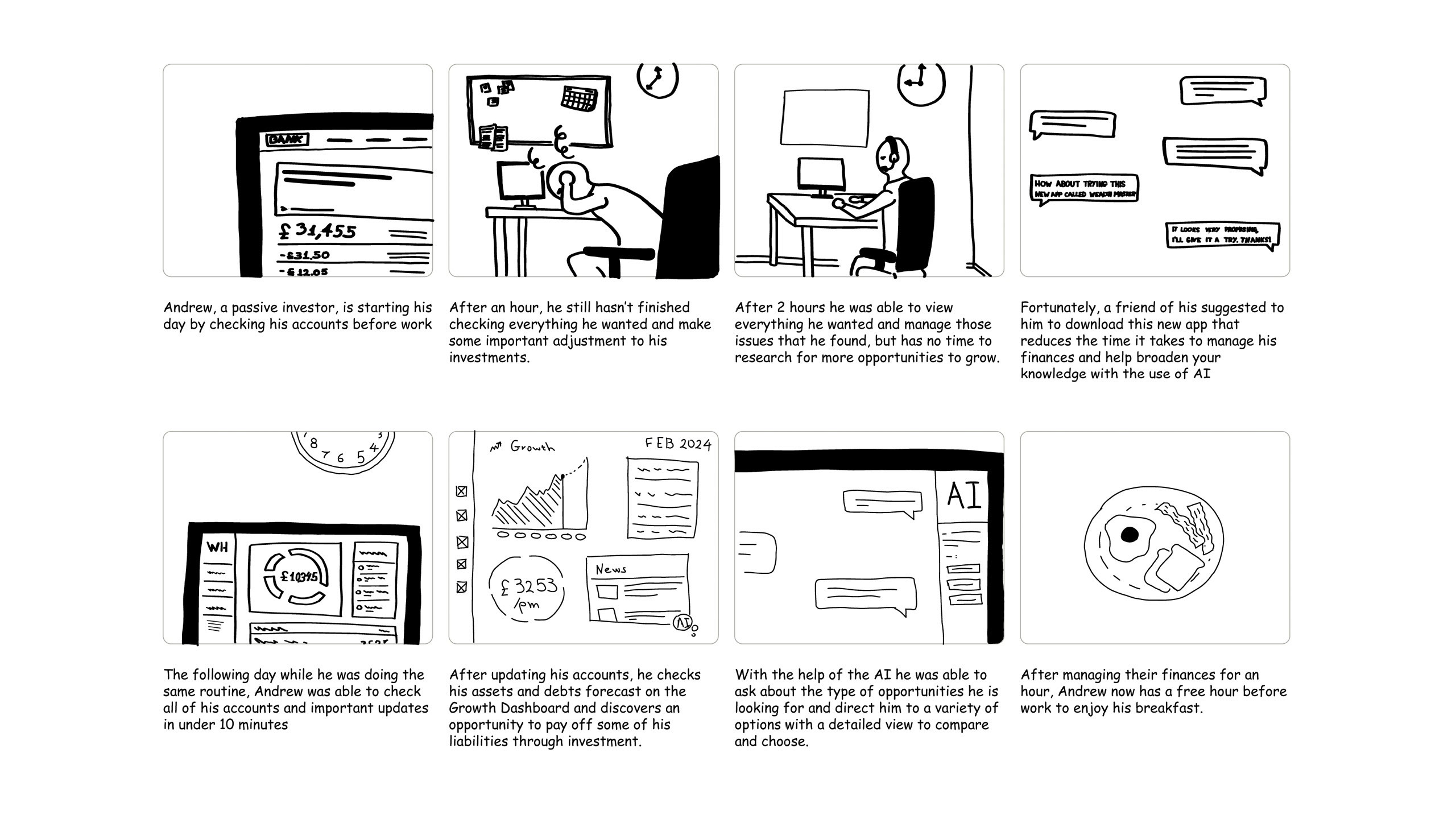 I achieved a deep understanding of real user challenges by creating a storyboard that visually mapped out their journey and scenarios. This process allowed me to identify potential design improvements early on.